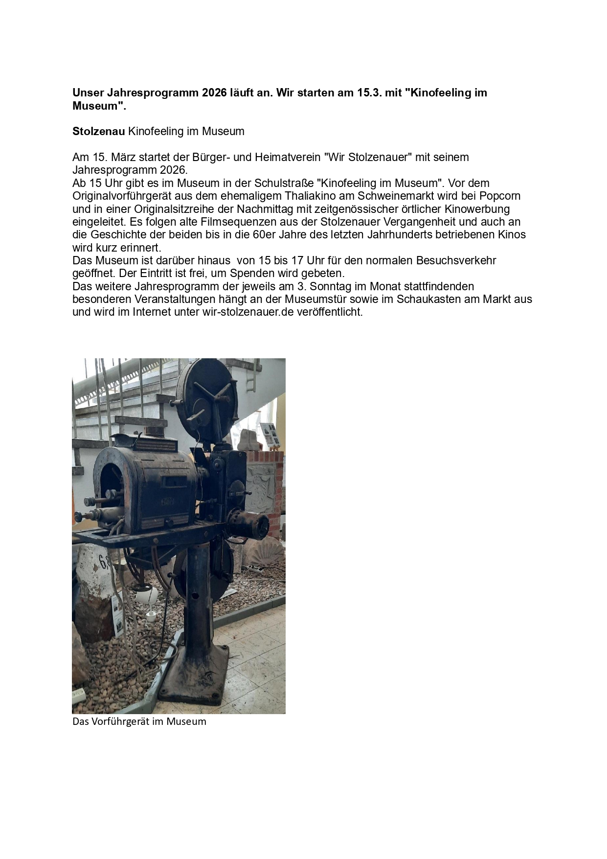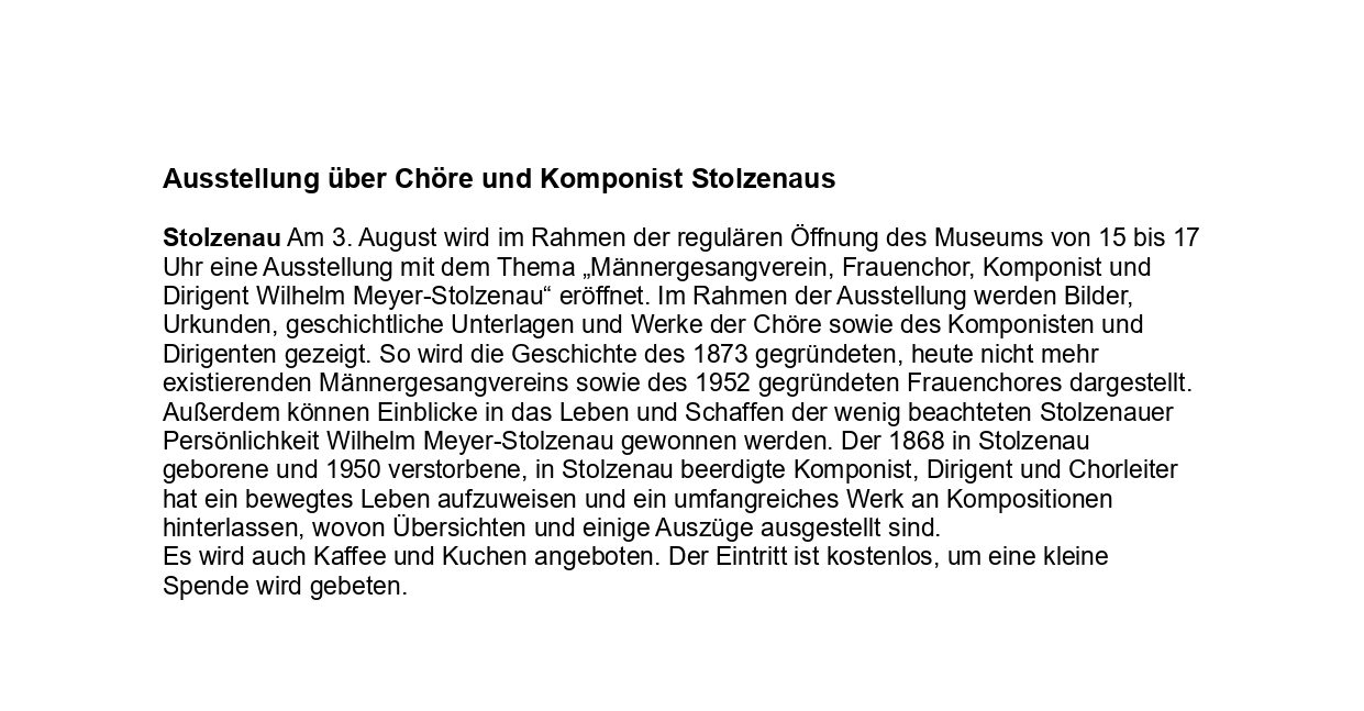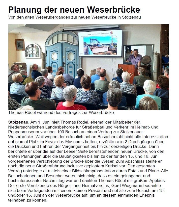 Pressemitteilungen, -artikel und Neuigkeiten des Bürger- und Heimatvereins "Wir Stolzenauer"