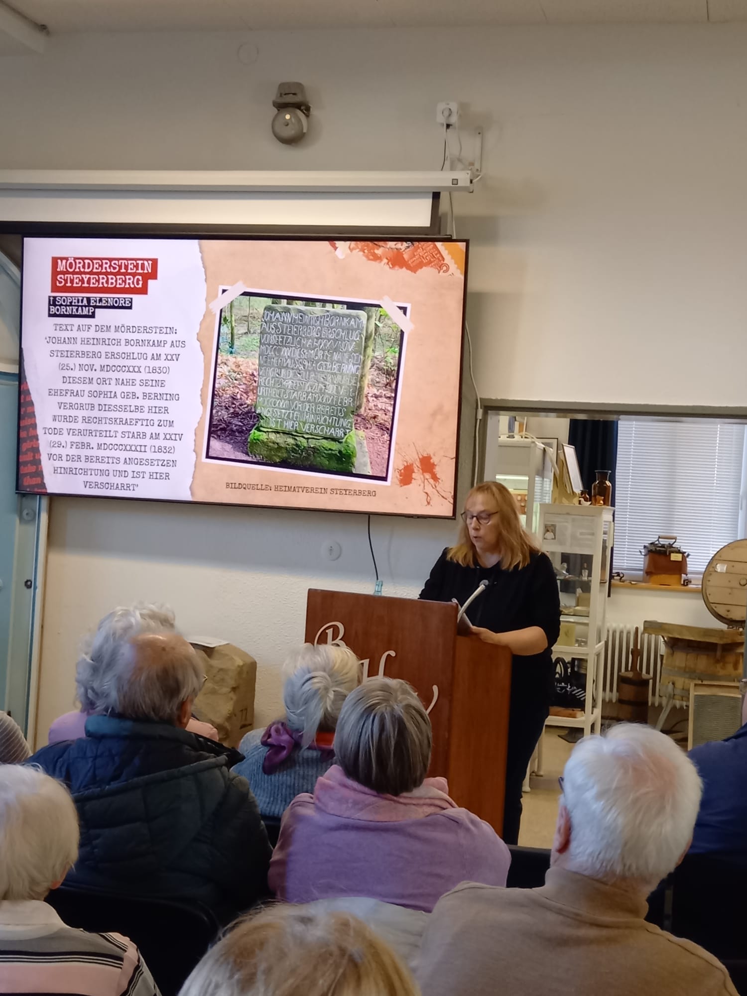 Christina Raven, Mitglied des Vereinsvorstands, nimmt die Zuhörerinnen und Zuhörer mit auf eine Reise durch die düsteren Kapitel der Stolzenauer Vergangenheit. Sie erzählt von geheimnisvollen Verbrechen, unheimlichen Begebenheiten und rätselhaften Ereignissen, die sich in Stolzenau und Umgebung zugetragen haben sollen.